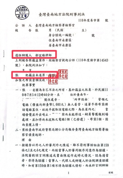 刑事竊盜罪 / 委任律師辯護爭取免刑判決