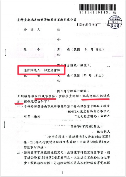 刑事詐欺、偽造文書 / 成功爭取不起訴處分
