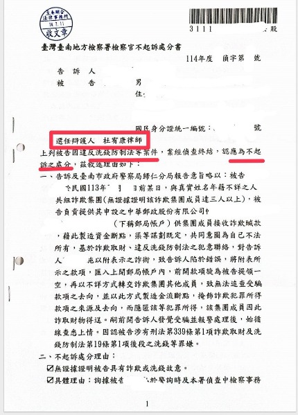 詐欺、洗錢車手 / 成功爭取不起訴處分